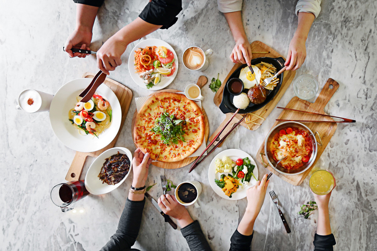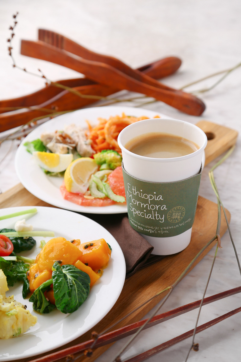 친환경 샐러드바 레스토랑 '세븐스프링스(Seven Springs)'의 다이닝 메뉴 및 라이프스타일 커머셜 사진입니다. 대리석 테이블과 따뜻한 색감의 우드 도마, 그리고 자연스러운 질감의 식물 오브제를 조화롭게 배치하여 세븐스프링스 특유의 신선하고 건강한 '자연주의' 브랜드 컨셉을 시각화했습니다. 샐러드 플레이트와 커피, 청량한 음료 단컷은 부드러운 자연광 무드의 조명을 사용하여 식재료 본연의 신선함과 다채로운 색감을 강조했습니다. 특히 피자, 파스타, 샐러드를 나누어 먹는 탑뷰(Top-view) 라이프스타일 컷은 화기애애한 다이닝의 순간을 생동감 있게 연출하여, 사랑하는 사람들과 함께 모여 식사하는 즐거움과 브랜드의 따뜻한 감성을 효과적으로 전달하는 푸드 포토그래피입니다.